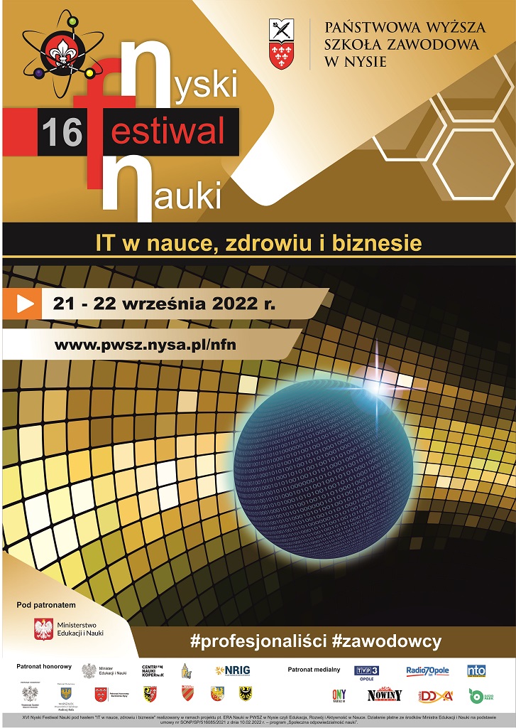 „IT w nauce, zdrowiu i biznesie” - pod takim hasłem w dniach 21- 22 września 2022 r. organizowany będzie Nyski Festiwal Nauki w Państwowej Wyższej Szkole Zawodowej w Nysie. Na XVI edycję Festiwalu przygotowano wiele atrakcji promujących naukę. Będą to wykłady, prezentacje, pokazy, ćwiczenia, laboratoria, wystawy i konkursy.