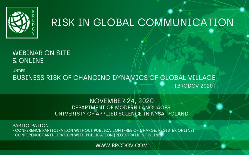 Indo-European Education Foundation, Department of Modern Languages of University of Applied Sciences in Nysa and International Cooperation Office with their international partners Patna University in India and Ternopil Ivan Puluj National Technical University in Ukraine are inviting you all for an international conference "Business Risk in Changing Dynamics of Global Village 2020-BRCDGV"