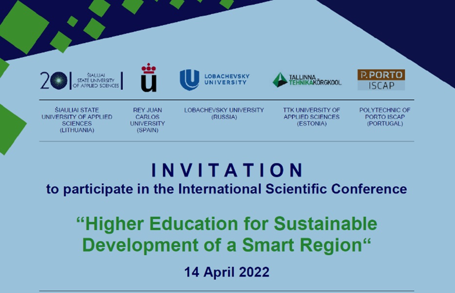 Šiauliai State University of Applied Sciences zaprasza do udziału w Międzynarodowej Konferencji Naukowej “Higher Education for Sustainable Development of a Smart Region“, która odbędzie się w dniu 14.04.2022 r.