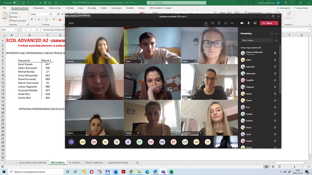 Studenci 2 roku studiów stacjonarnych kierunku finanse i rachunkowość uczestniczą w kursie prowadzonym przez dr inż. Adrianę Halikowską przygotowującym do egzaminu ECDL ADVANCED A2. Zajęcia odbywają się w ramach projektu POWER 3.1 „Prometejska podpowiedź: kształcenie kadr dla sektora usług dla biznesu na kierunku finanse i rachunkowość w PWSZ w Nysie”, którego celem głównym jest wykształcenie dyplomowanych specjalistów (kadr) dla sektora usług dla biznesu. Uzyskanie certyfikatu z zakresu ECDL ADVANCED A2 potwierdza następujące kompetencje studenta: