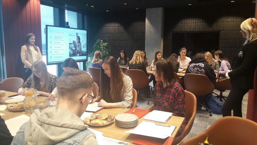 W trakcie wizyty pracownicy przedstawili firmę tj. informacje o jej funkcjonowaniu, zarządzaniu, strukturze wewnętrznej, omówili możliwości edukacji i kariery.